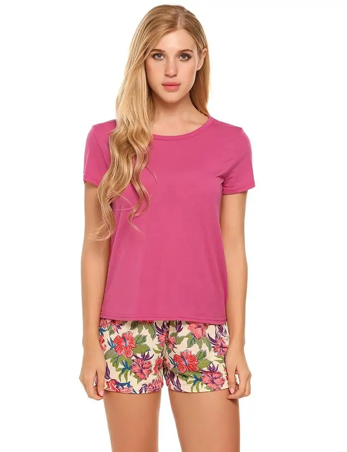 Item 1:O-neck short sleeve solid tops with elastic waist shorts