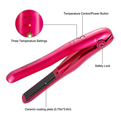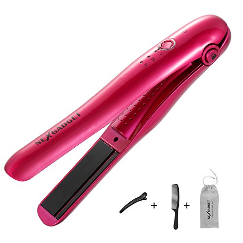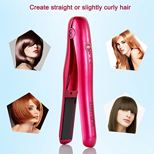 NEXGADGET Hair Straightener Rechargeable Mini Cordless Flat Iron With Power Bank Function(2900mAh/3.7V) & Adjustable Temp Portable Travel...