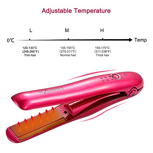 - ADJUSTABLE TEMPERATURE: It has 3 temperature settings from 248°to 338°F (L-M-H), suits for thin, normal and thick hair. Apply to straighten and slightly curl hair, but NOT THAT HOT THAN CORD ONES. Moderate temperature, No damage to hair.