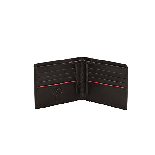 Product DescriptionLeather wallet with contrast piping. Bi-fold. 8 credit card slots. Note section. Size: 4.3in x 3.5in.0