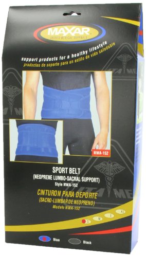 ReleaseDate : 2007-09-26 Studio : Maxar Publisher : Maxar Binding : Health and Beauty Product Description MAXAR Airprene Sport Belt (Breathable Neoprene Lumbo-Sacral Support) provides excellent support, warmth and comfort to the abdominal and lumbo-sacral areas. Airprene (Breathable Neoprene) and Terry cotton lining helps minimize sweating and reduces allergic skin reactions. It keeps your lower back warm, protects from injuries and helps reduce lower back pain. Highly recommended by Doctors during sports activity for prevention and treatment of back injuries and for people who: Suffer from osteochondrosis, lumbago or have ever experienced lower back pain; Those who have undergone surgery on the lower section of the spine; Lift and move heavy objects; Perform physical activities in extreme weather conditions. Conditions: Back pain, abdominal pain, osteochondrosis, lumbago, surgery on the lower section of the spine, physical activities in extreme weather conditions, lift and move heavy objects, sports injuries, industrial back injury 0