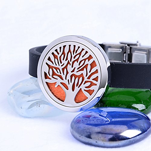 Tree of Life Aromatherapy Essential Oil Diffuser Bracelet Stainless Steel Locket Bangle Silicone Band Adjustable 12 Refill Pads