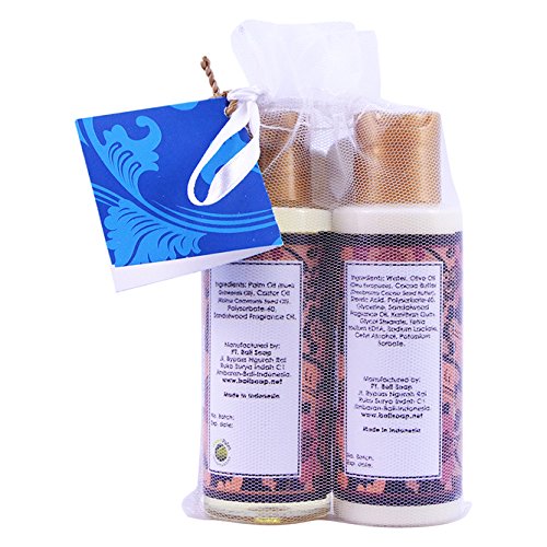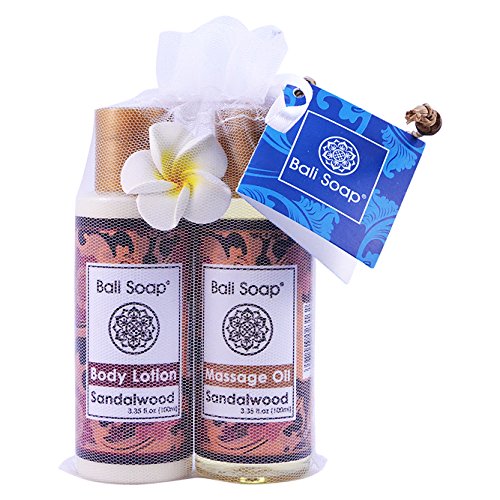 -. Binding : Misc. -. Brand : Bali Soap -. EAN : 8997003024183 -. Feature : Perfect small gift of sensuous massage oil and body lotion / Made on the exotic island of Bali / Indulge your skin and senses -. IsAdultProduct : 0 -. Label : Bali Soap USA -. Manufacturer : Bali Soap USA -. MPN : 5289276 -. NumberOfItems : 2 -. PackageQuantity : 2 -. PartNumber : 5289276 -. ProductGroup : Beauty -. ProductTypeName : BEAUTY -. Publisher : Bali Soap USA -. Studio : Bali Soap USA -. Title : Bali Soap - Gift Set, Massage Oil & Body Lotion, 3.3 Oz each (Sandalwood)