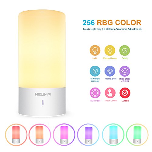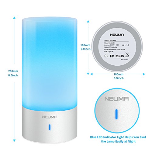 NEUMA Smart Bedside Table Lamp, Dimmable Warm White Light, Children Living Room Night Light, Touch Sensor and 256 RGB Color Changing Modes for Kid Baby Bedroom