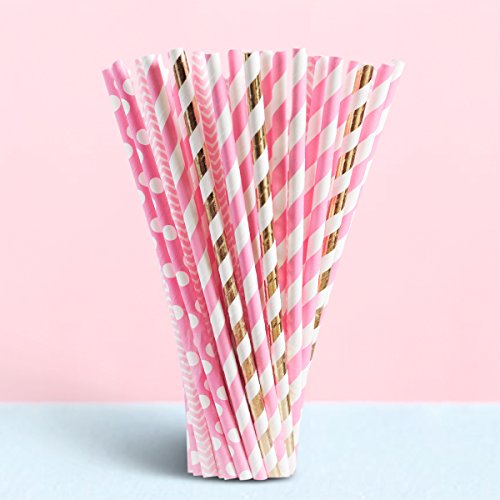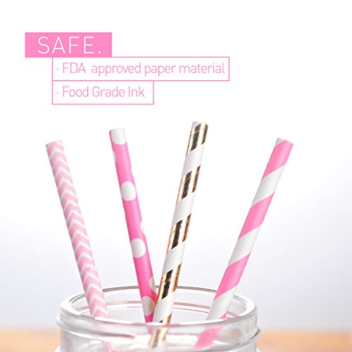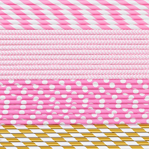 ★Various patterns: the straws contains (25) Striped Metallic Gold/(25) Light Pink Wave/(25) Light Pink Dot/(25) Light Pink Stripe.100 pieces paper decoration straws in one package.