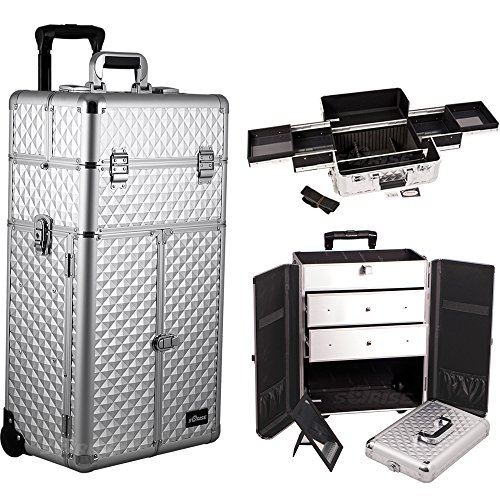 Sunrise I3166PPAB Blackmatteprofessionalrollingaluminumcosmeticmakeupcraftstorageorganizercasefrenchdoorstylewithlargedrawersandeasy-Slidetrays-I3166, Black