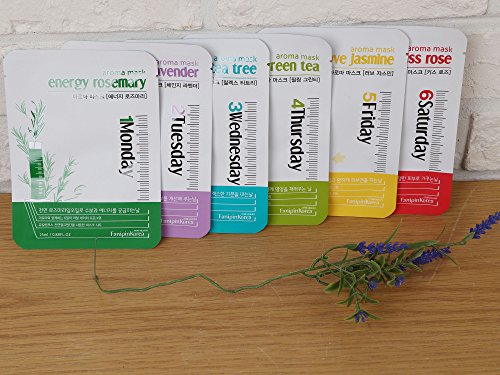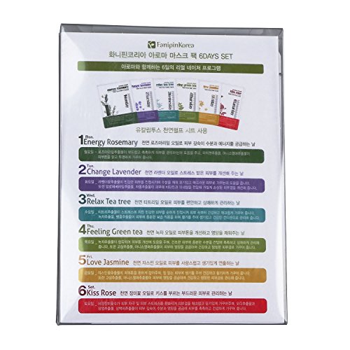 -. Title : Fanipin Global | Aroma Mask 6 Daily Sheets | Energy Rosemary, Change Lavender, Relax Tea Tree, Feeling Green Tea, Love Jasmine, Kiss Rose | HOME SPA 6 DAYS OF THE WEEK with relaxing Aroma Mask Packs