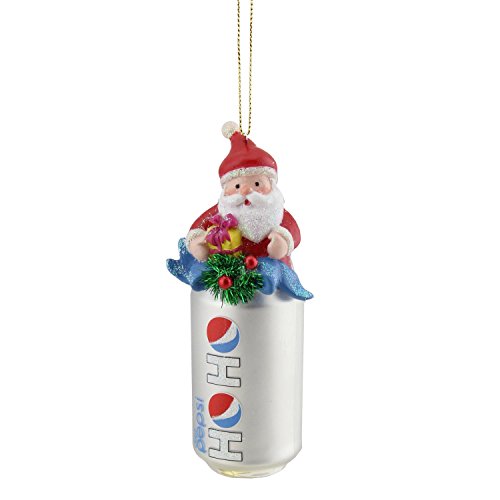 Northlight 4.75" Ho Diet Pepsi Can with Santa Topper Decorative Glass Christmas Ornament, Silver