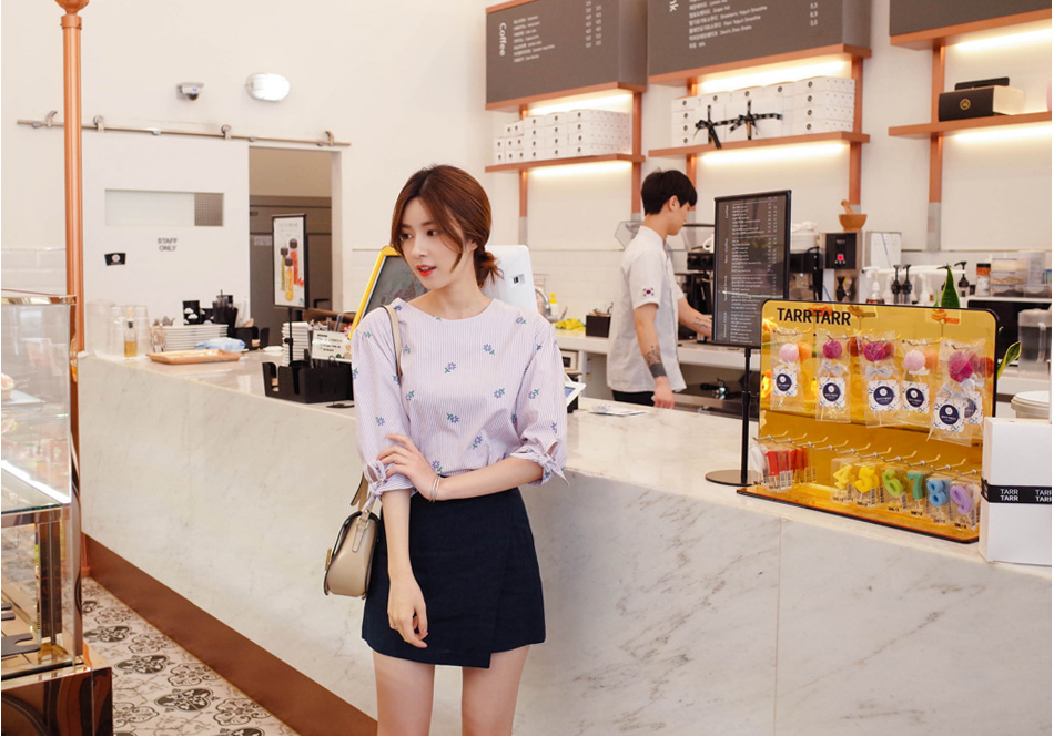 스트라이프과 플라워의 만남으로 더욱 매력적인