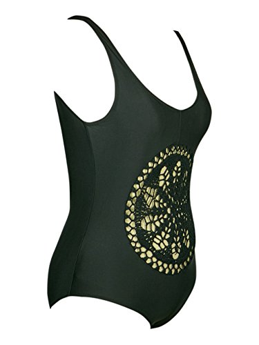 -. Binding : Misc. -. Brand : Blooming Jelly -. Department : womens -. Feature : Pick one size up please / Slightly padded / High leg cut / Great for summer, this stylish bikini top is sure to stand out at the beach. / One size up -. ProductGroup : Apparel -. ProductTypeName : SWIMWEAR -. Title : Womens Crochet Hollow Out Deep V Hater One Piece Swimsuit Bathing Suit