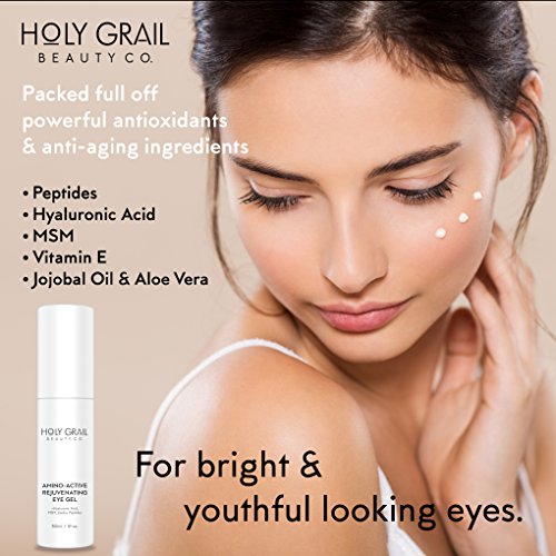 Turn back time and reverse visible signs of aging. Wave goodbye to wrinkles, dark circles and under eye bags for good sooth tired eyes and achieve instantly younger looking eyes with our light, anti-aging eye cream. Holy Grail Beauty amino active eye gel is an air-soft periorbital treatment which soothes, smooths, firms and plumps the skin around the eye area while working to protect against and reverse signs of photo aging and skin damage. Concocted from a unique blend of peptides, hyaluronic acid and mms and improved with the natural, skin smoothing benefits of vitamin e, jojoba and aloe Vera, our amino active eye gel is the perfect addition to your anti-aging skincare regime. Suitable for day and night use.Feature