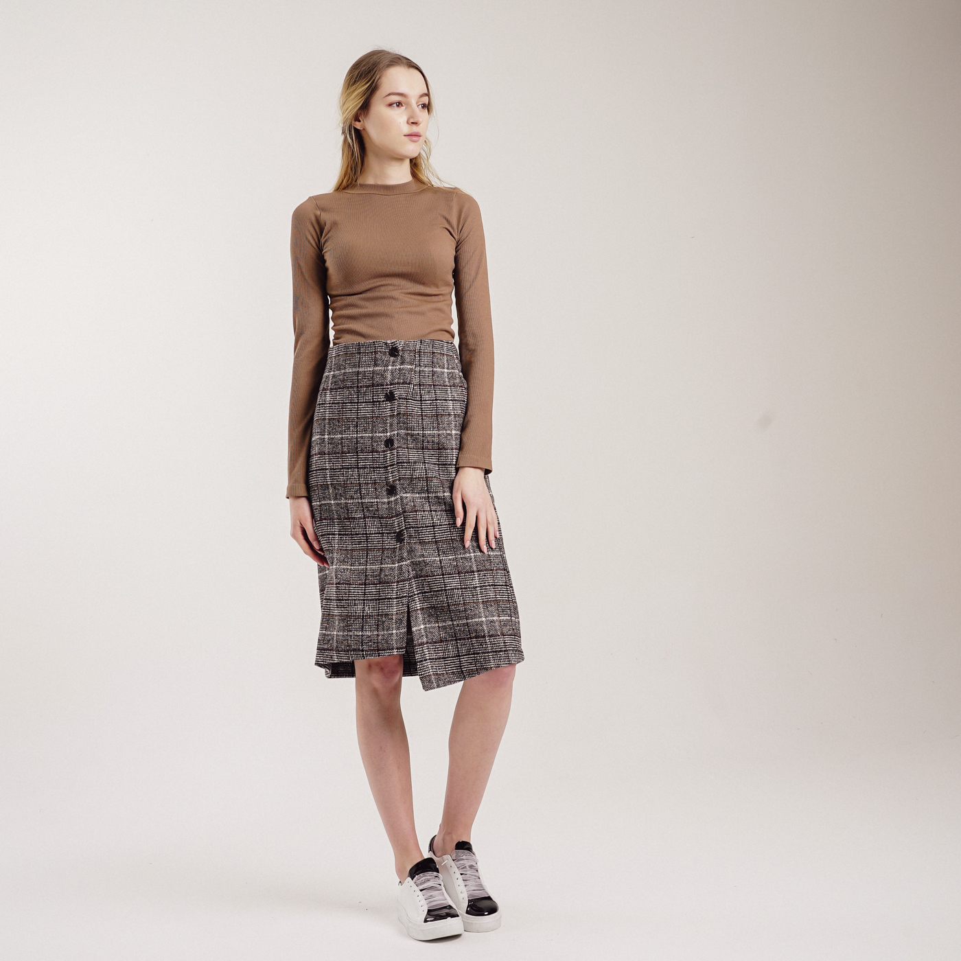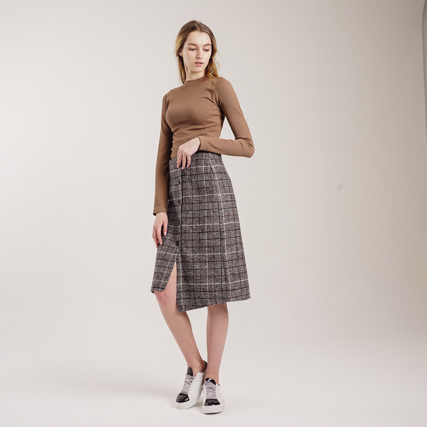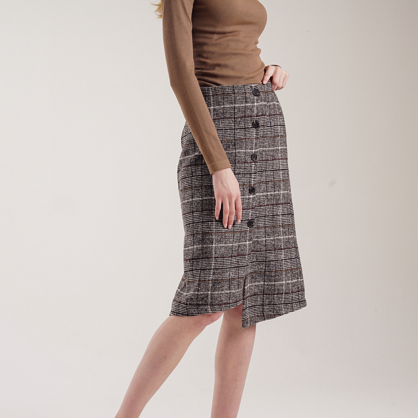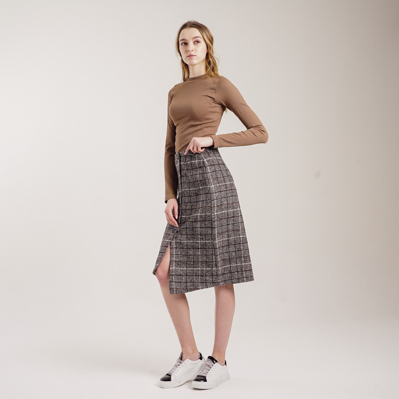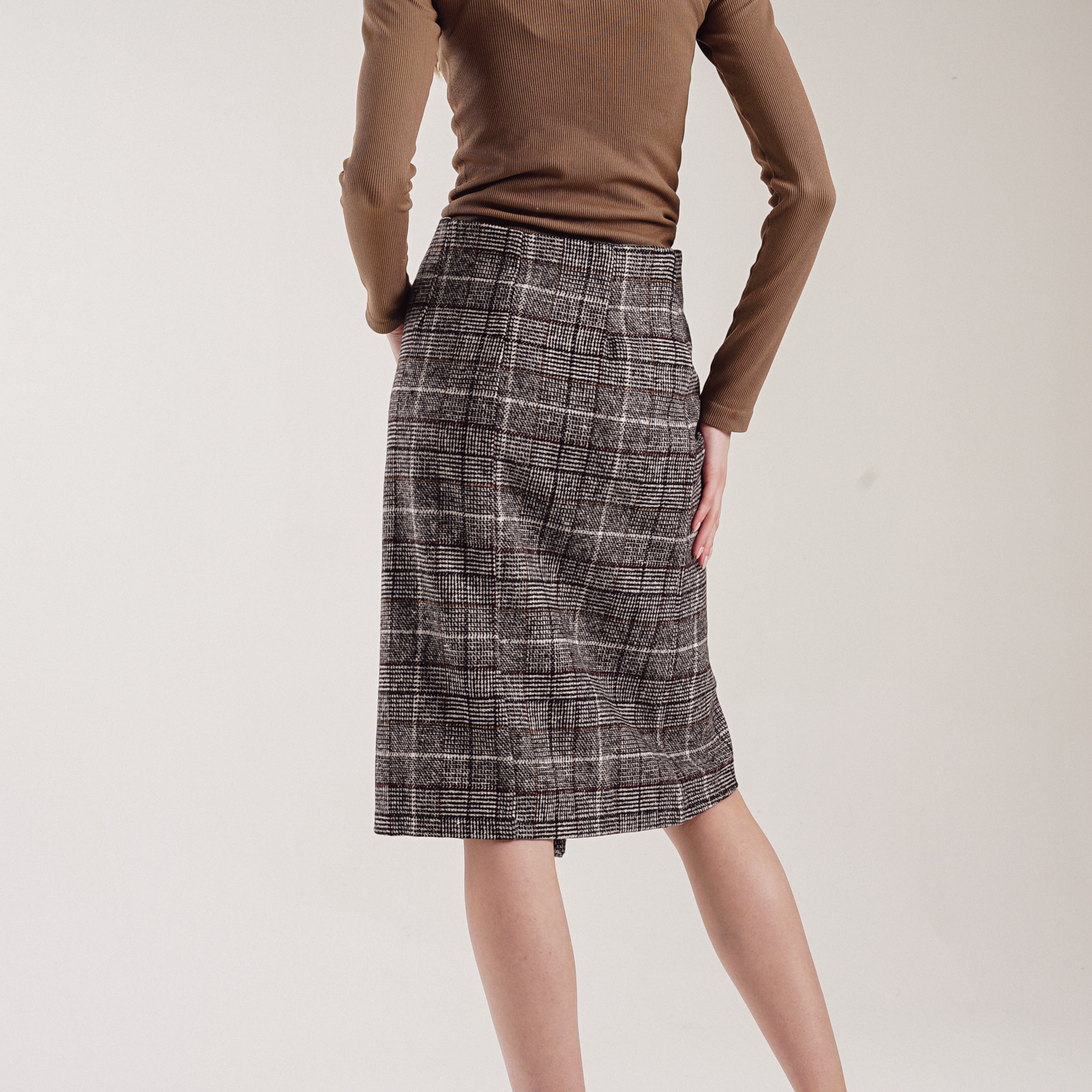 미디길이의 따뜻한 소재의 고급스런 체크 스커트입니다.