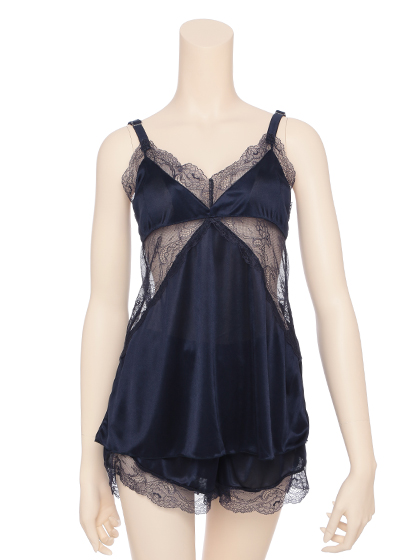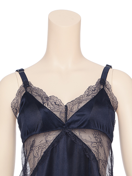 リュクスな光沢のあるファブリックと、大胆で軽やかなレースの切り替えしが、刺激的なセクシーさを奏でる。