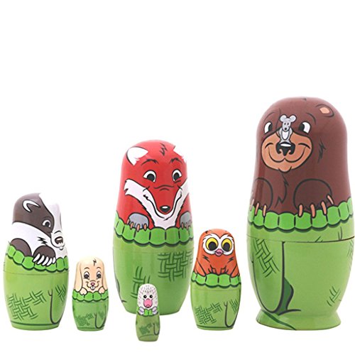 -. Feature : Handmade cartoon animal painting nesting dolls / Consists of 6 diminishing sized dolls, each stacked into bigger ones / Cute adorable and chic animal painting: bear, fox, wolf, owl, puppy, mouse / A good company of little kids spending their play time / Also a housewarming item that lends peaceful and soothing air