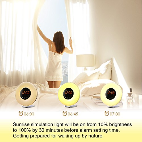 Wake You UP from the Nature - The light will be on from 1% of brightness to 100% within 30 minutes, gradully bring you out of your sleeping as if waken by the nature.It's time to welcome a fresh day!