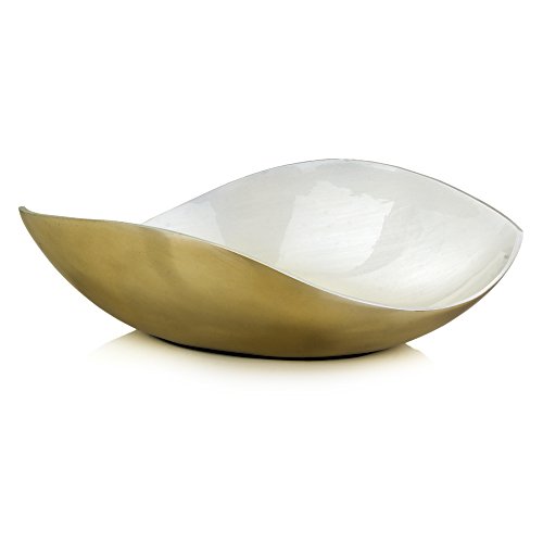 - This custom Made accessory to decorate your home is an aluminum wavy shape bowl with a gold and White glaze enamel finish
