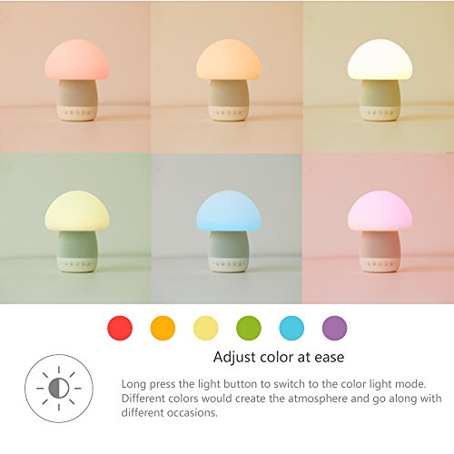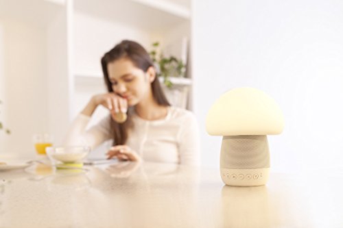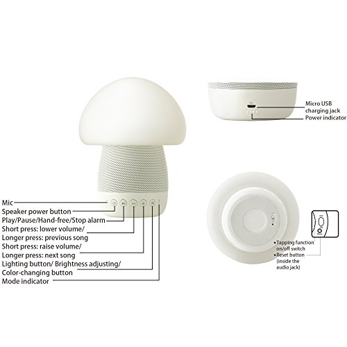 [All-in-one design]: Great combination of Bluetooth speaker, tap responsive/button-press/App control multi-color silicone LED mushroom lamp, and micro-speakerphone, with built-in battery and portable design.