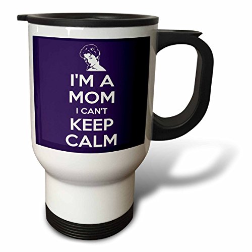 3dRose tm_200826_1 Im a Mom I Cant Keep Calm Purple Travel Mug, 14-Ounce, Stainless Steel