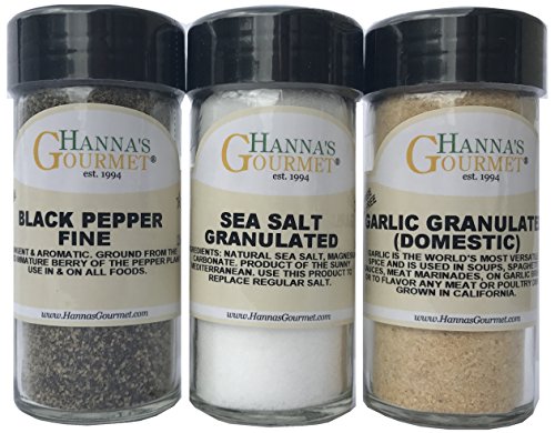 -. Binding : Misc. -. Brand : HANNA'S GOURMET -. EAN : 0070007599500 -. Feature : NON COOK BASIC SUPPLY SET (3 PACK) / EACH ITEM PACKED IN 4 FL. OZ. GLASS JAR / ALL NATURAL / ALL PURE / STAR K CERTIFIED -. IsAdultProduct : 0 -. Label : JR SPICE CO -. Manufacturer : JR SPICE CO -. PackageQuantity : 1 -. ProductGroup : Grocery -. ProductTypeName : GROCERY -. Publisher : JR SPICE CO -. Studio : JR SPICE CO -. Title : GOURMET SPICE GIFT SET - BASIC SUPPLY SET (3 PACK) -. UPC : 070007599500