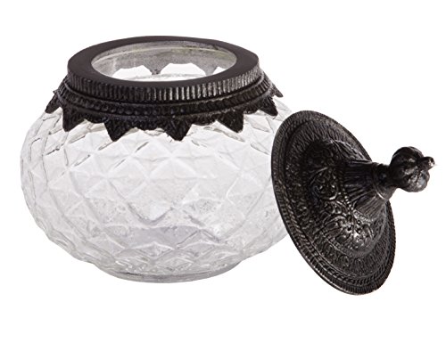 - Made of crystal clear diamond cut glass with a highly detailed tin topper (Not Food Safe, Decoration Only)