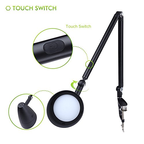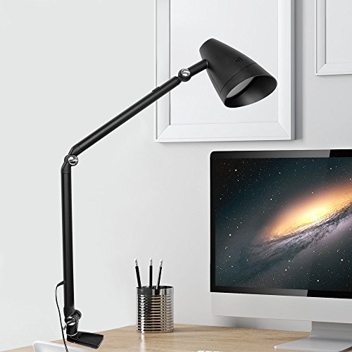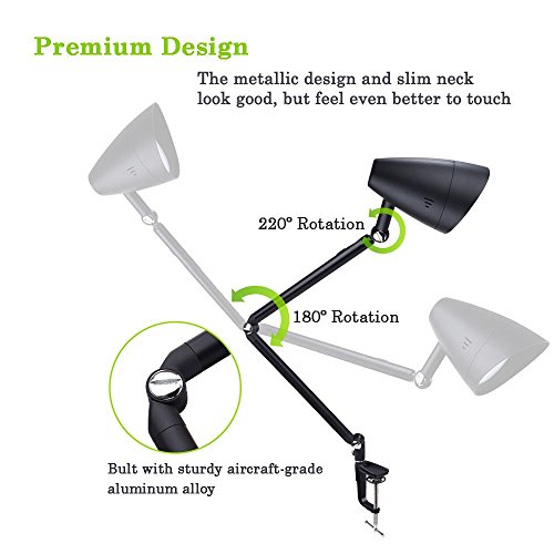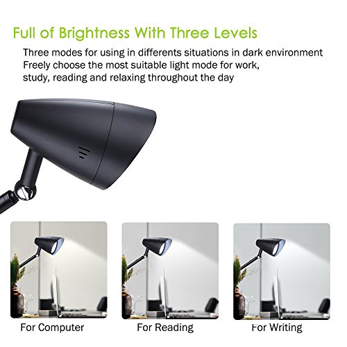 ★ Adjustable Swing Arm Desk Lamp: It owns 220° swivel head and 180° adjustable long arm, infinitely rotatable body. Strong clamp supports up to 2.16 inches tabletop. It also offers 3-Level Dimmer to make sure you're able to get the perfect lighting need and angle.
