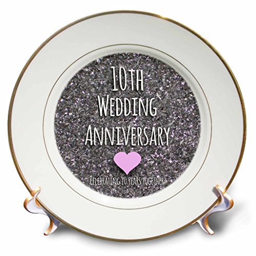 3dRose cp_154442_1 10th Wedding Anniversary Gift Tin Bits Photo Celebrating 10 Years Together Tenth Anniversaries Ten Porcelain Plate, 8-Inch