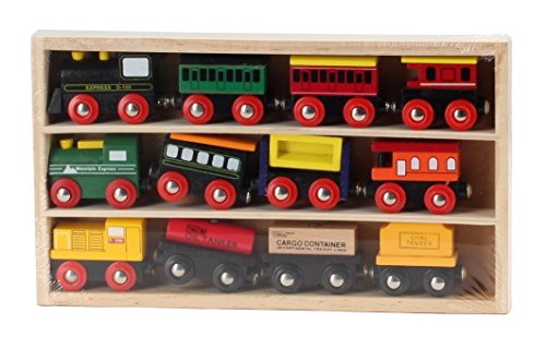 -. Title : Omni Wooden Toys Wooden Engines and Train Cars Collection Set, 12 Piece