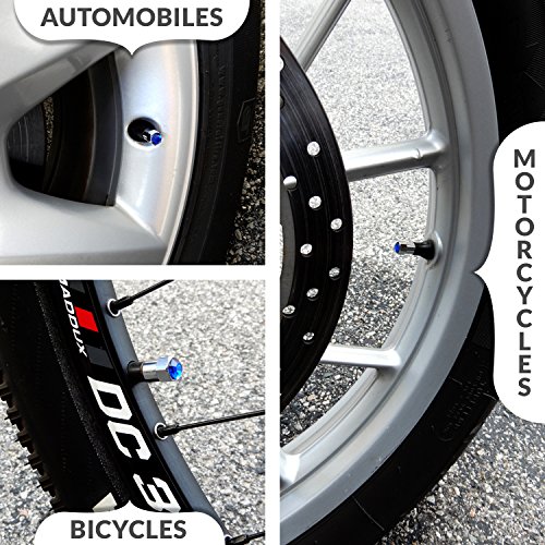 UNIVERSAL FIT: Sparkle Rider’s custom rhinestone tire valve caps fit standard SCHRADER VALVES and are perfect for your CAR, TRUCK, SUV, ATV, TRIKE, MOTORCYCLE, and wider rimmed BICYCLE; Note they are NOT RECOMMENDED for vehicles equipped with TPMS (tire pressure monitoring system) and to avoid damaging the threads make sure not to over tighten.