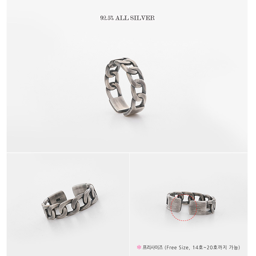 92.5% All Silver 반지입니다. 프리사이즈로 사이즈를 자유롭게 조절할수 있어 더욱 매력적인 아이예요.