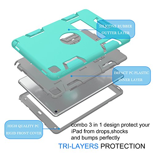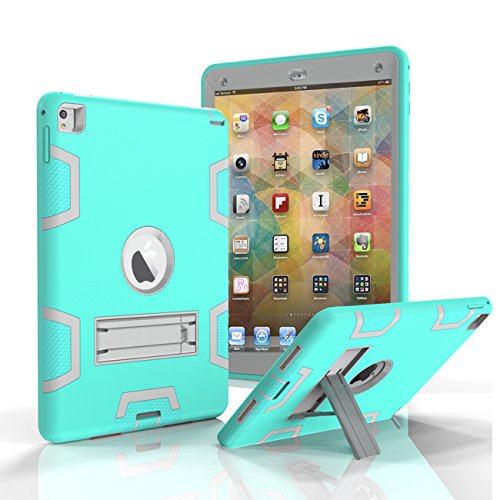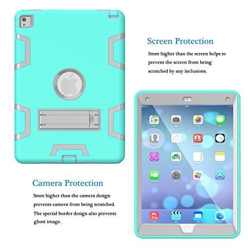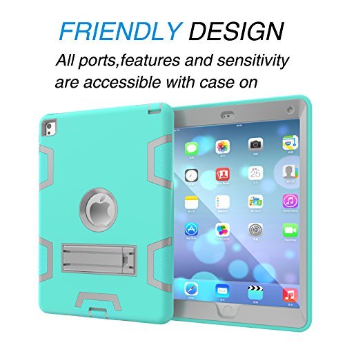 iPad Air 2 Case, Tekcoo [Troyal HY] Hybrid Shock Absorbing Heavy Duty Defender Rugged Silicone Hard Case With Kickstand Full Body Protective Cover For Apple iPad Air 2nd Gen/ Ipad 6 [Turquoise/Grey]