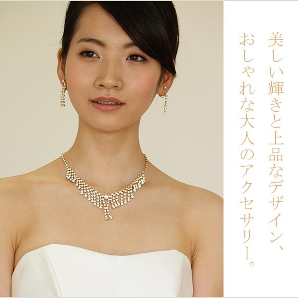 ウエディングドレスのデザインを選ぶことなく、合わせやすいネックレスセットです。 (ウエディングだけでなく、2次会やパーティーにもお使いいただけます。)