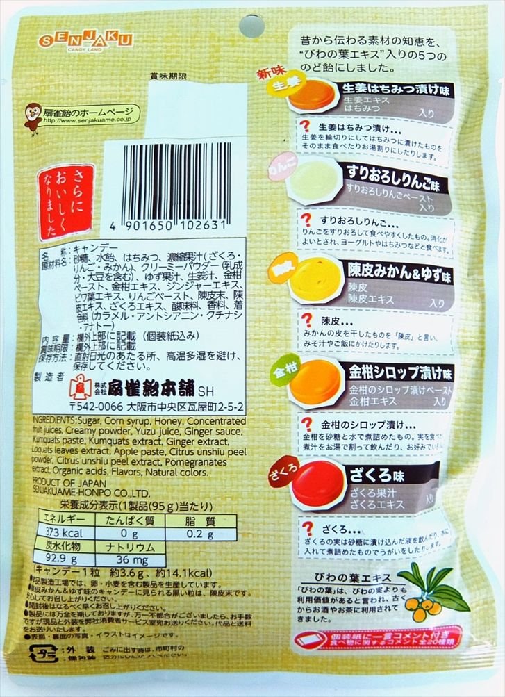 Per bag / energy 373 kcal, protein 0 g, lipid 0.2 g, carbohydrate 92.92 g, sodium 36 mg
