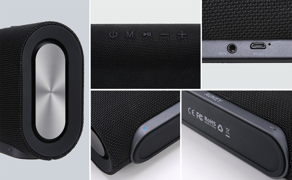 The speaker automatically connects to your paired device when switched on. Five simple buttons control power, play, track skipping (back/forward), volume, and even calls with the built-in mic. Charge with the included micro-USB cable and enjoy over 12 hours of playtime.