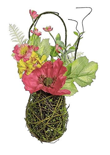 Select Artificials Decorative Wildflower Artificial Floral Hanging Basket Wall, 12", Red Poppy/Orange