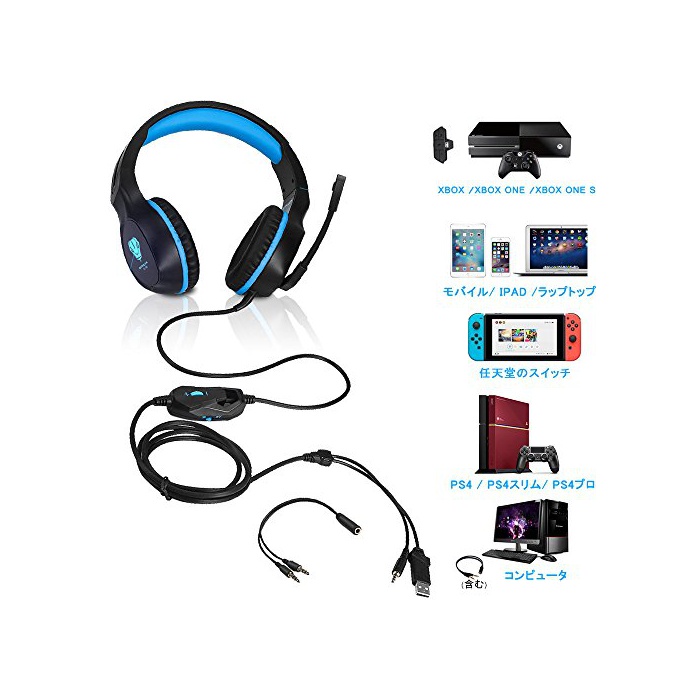 원본상품명: PCゲムヘッドセット、PS4ヘッドフォン(LEDライト付)、3.5mm有線ノイズ分離タイプ()