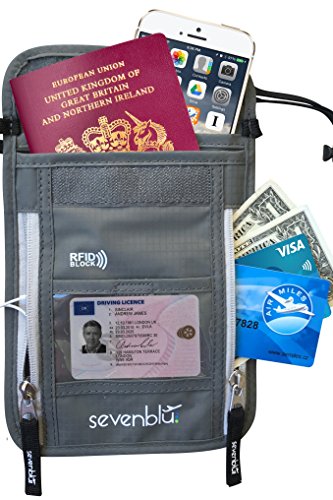 -. Title : SevenBlu Passport Holder | Travel Neck Wallet w RFID Block - # 1 Hidden Neck Pouch - PREMIUM Quality Money Belt - for Women and Men