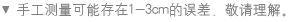 | 尺码 | 肩宽 | 胸围 | 下摆围 | 袖长 | 袖口 | 袖臂围 | 前衣长 | 后中长 |