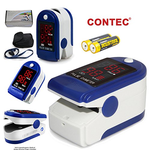 -. Title : CONTEC Finger Tip Pulse Oximeter with Carrying Case batteries Neck/Wrist Cord-Blue For Sports use