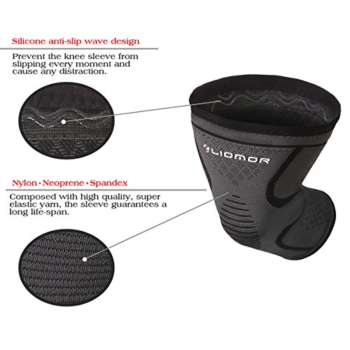 Liomor Knee Sleeve Compression & Support for high intensity activities, Joint Pain and Arthritis Relief - L Size