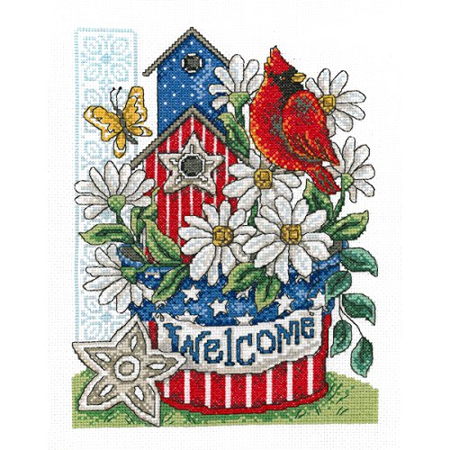 M&R Technologies Patriotic Welcome Cross Stitch Kit-7.5"X10" 14 Count
