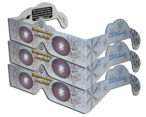 • A SURPRISE FOR THE EYES! Holiday Specs holographic lenses mysteriously transform ordinary Christmas lights or any bright point of light into different magical messages delighting people of all ages. For each point of light you will see a Snowflake! These are so cool! Holiday Specs glasses are brilliantly printed in full color holiday designs with easy to read directions.Top Uses for Holiday Specs: * Party Favors * Fundraising * Package Decorations * Secret Santa