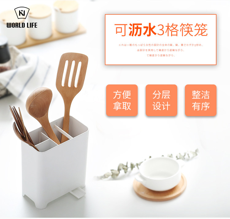 家用创意筷笼子厨房沥水筷子筒多功能塑料分格餐具勺子铲子收纳盒