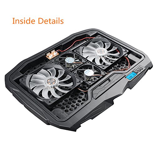 -. Title : Laptop Cooler, Aicheson Laptop Cooling Pad Chill Mat with 4 Quiet Fans USB Powered Adjustable Mounts Stand with LCD Display and LED Lights