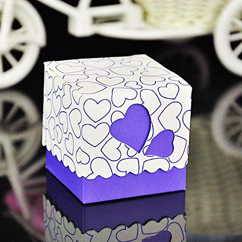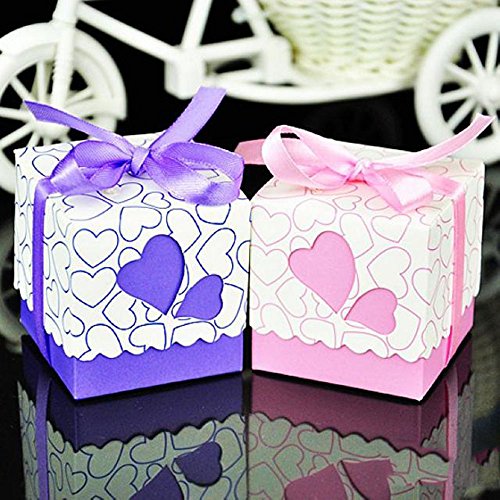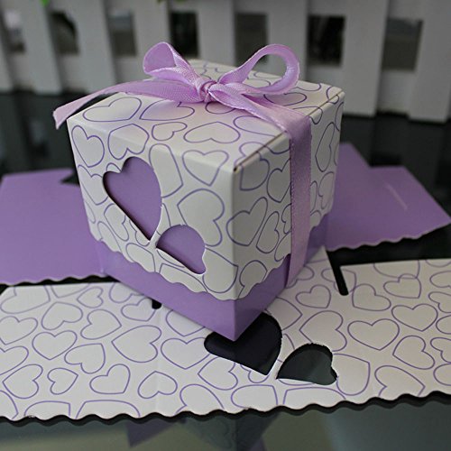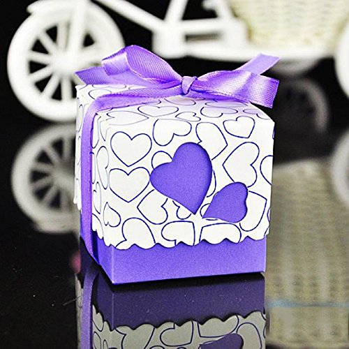Crazy Genie 50pcs Hollow Out Love Heart Bowknot Pattern Wedding Favor Boxes Souvenir Candy Box Baby Shower Gift Box Chocolate Box for Wedding Party Supplies (Purple)