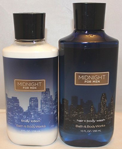 -. Feature : Bath & Body Works Midnight For Men Set of Two includes: / 8 Fl. Oz. Body Lotion / 10 Fl. Oz. Hair & Body Wash / Bergamot spice & blue sage meet the warm masculinity of leather woods to create the ultimate collision of seduction and sophistication