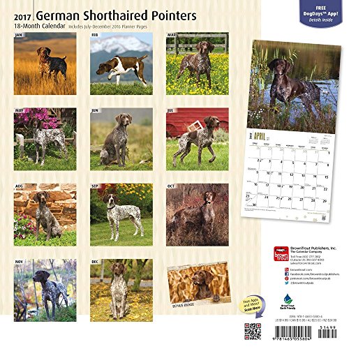 -. Binding : Office Product -. Brand : 2017 Calendars -. EAN : 0715658170332 -. Feature : 2017 Calendar featuring beautiful full color photographed images for every month of the year. / Includes Holidays and Observances / Perfect for office spaces, bedrooms, classrooms and more! / Makes a great gift for friends and family! / Keep your appointments and Birthdays organized in one place! -. Label : 2017 Calendars -. Manufacturer : 2017 Calendars -. Model : 55804 -. MPN : 0 -. PackageQuantity : 1 -. PartNumber : 0 -. ProductGroup : Office Product -. ProductTypeName : OFFICE_PRODUCTS -. Publisher : 2017 Calendars -. Studio : 2017 Calendars -. Title : German Shorthaired Pointers - 2017 Calendar 12 x 12in -. UPC : 727857235095