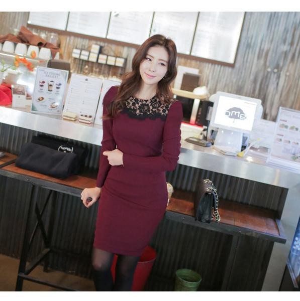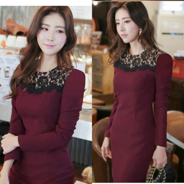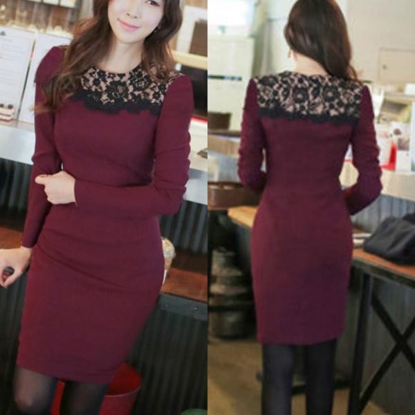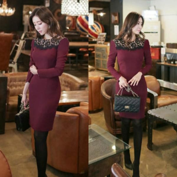 エレガント 花柄レース切替 ミニ丈タイトワンピース ブラック/XL