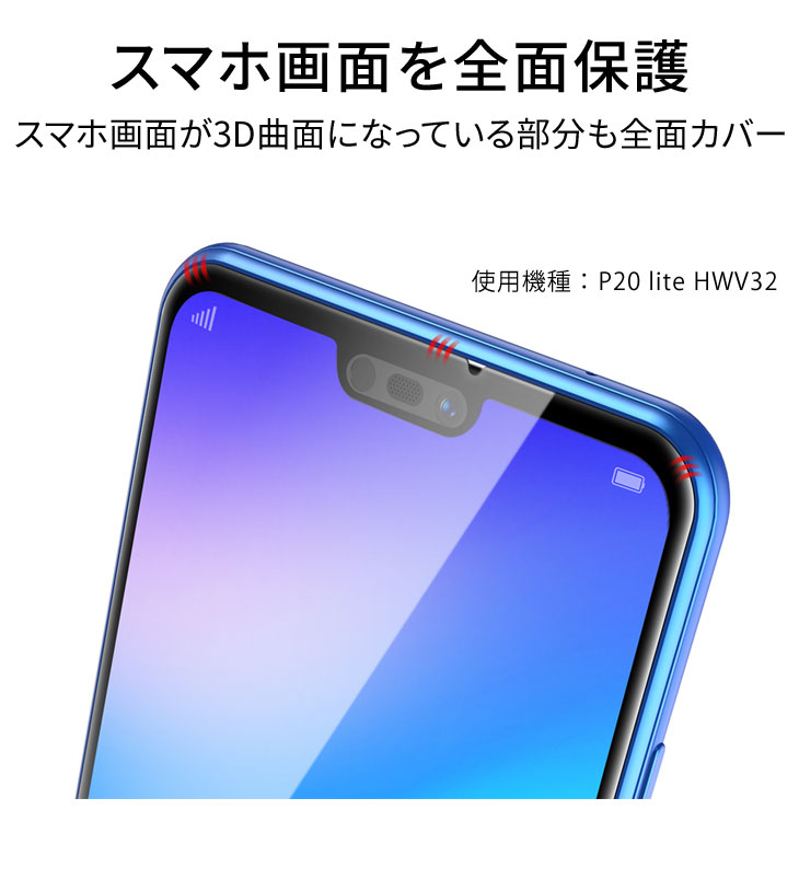 Hy+ Huawei P20 lite HWV32 液晶保護 ガラスフィルム 強化ガラス 全面保護 日本産ガラス使用 厚み0.33mm 硬度 9H