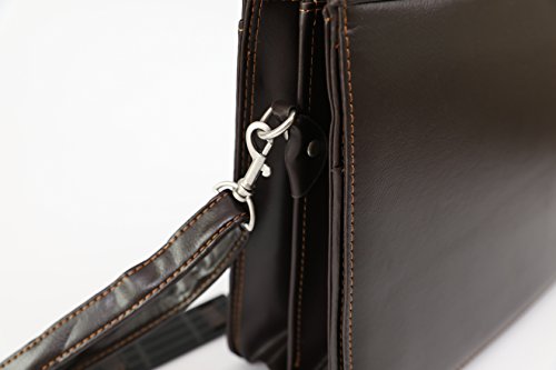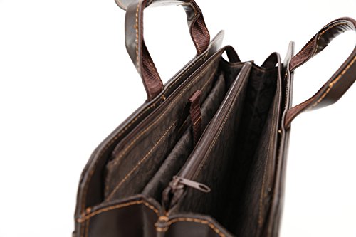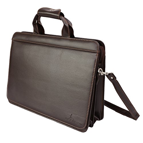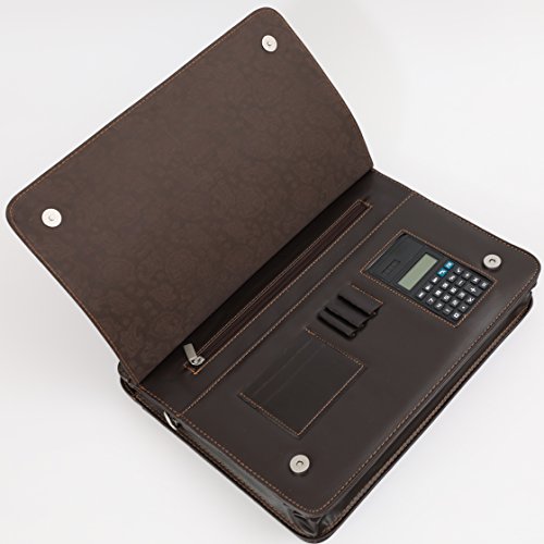 Product Description Keep your business essentials well organized and put together with the Deerlux Brown Faux Leather Briefcase. This large-capacity briefcase has 2 large inner compartment for books, binders and folders, a separate zippered compartment, and a laptop computer compartment. It also features an outside pocket for easy access. The front flap contains two additional pockets, three pen/stylus slots, a card holder, and a built in calculator. Designed with top handles and removable and adjustable shoulder strap, you could use it as a handbag, shoulder bag or cross-body bag. 0