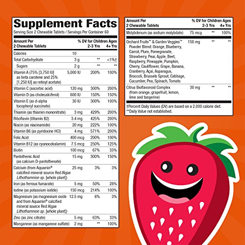 Product DescriptionChildren's chewable multivitamin made with 26 fruits and vegetables plus nutrients to support children's health and growth.0